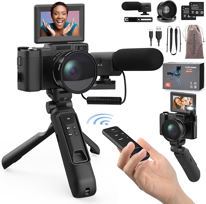 Digital Camera with Creator Accessory Kit 48MP 4K Video Camera for Vloggers Remote Control Autofocus Flip Screen Camcorder Photography Cameras with Tripod Grip, Wide-angle & Macro lens, Mic, Batteries. Details here. #CommissionsEarned
